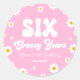 Esta es una flor de margarita rosada de seis años groovy Pegatinas del partido de cumpleaños número 6.
