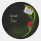 Hermosa imagen de estilo fractal de una ladybug rojo brillante que recorre la hoja verde de primavera de una lirio de la flor del valle sobre un fondo negro.