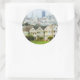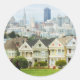 Pegatina Redonda Damas pintadas, casas victorianas y horizonte