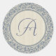 Pegatina Redonda Damasco elegante azul y beige con monograma