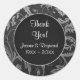 Elegante Gracias Bodas Sellos de Aniversario con damasco floral gris negro y plateado. El texto dice Gracias, con información de nombre y fecha lista para ser personalizada por usted.