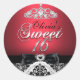 Pegatina Redonda Damasco Rojo y Bow Dulce Dieciséis Pegatinas