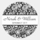 Pegatina Redonda Damask boda Damask Damasco floral blanco y negro