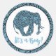 Un exótico elefante damasco en tonos azules sobre negro con un texto moderno que anunciaba "¡Es un niño!". Si prefiere agregar su propio texto a este pegatina, elija el botón "Personalizar" y borre la imagen "¡Es un niño!" y luego inserte su propio texto personalizado. Vea aquí la invitación a la ducha de bebé correspondiente: