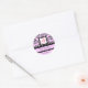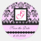 Pegatina Redonda DAMASK MONOGRAM, fucsia rosa