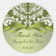 Pegatina Redonda Damask verde y blanco Gracias Boda
