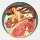 1898 poster Art Nouveau de litografía por el artista checo Alphonse Mucha (1860-1939). Hermosa mujer con un vestido rojo, flores en su largo y brillante cabello rojo, su espalda arqueada, mirando sobre los hombros descortezados, de pie sobre sus dedos de los pies.