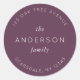 Pegatina Redonda Dark Purple Family Name Return Address Modern