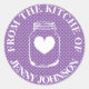 De la cocina de pegatinas vintage de tarro de albañil con patrón de puntos de polka morado. Etiquetas de nombres de favores de partido personalizadas con mensaje de personalizado. Elegante diseño de polkadots redondos con símbolo de corazón de amor en un frasco rústico. Plantilla de tipografía elegante. Añade tu propio nombre y/o apellido familiar. Moda de campo suave con etiquetas de bricolaje o sellos para cocina casera y productos de horneado como galletas, dulces, pasteles, pastelitos, Navidades Tratos de vacaciones, etc.