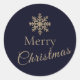Agregue un toque de elegancia a sus envíos y paquetes de vacaciones con esta hermosa etiqueta redonda. El fondo azul marino profundo está adornado con un copo de nieve dorado bruñido en la parte superior, que simboliza la serena belleza de la temporada. Debajo, "Feliz Navidad" se presenta elegantemente en tipografía clásica y letra cursiva, capturando el espíritu de tranquilidad y buena voluntad. Perfectas para agregar un toque sincero a sus saludos festivos, estas etiquetas son una forma encantadora de difundir alegría y calidez en esta temporada navideña. Úselas para sellar sobres, decorar envolturas de regalos o adornar favores navideños. Eleve su presentación navideña con este diseño cautivador y significativo.