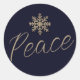 Agrega un toque de elegancia a tus envíos y paquetes de vacaciones con esta hermosa etiqueta redonda. El fondo azul marino profundo está adornado con un copo de nieve dorado bruñido en la parte superior, que simboliza la serena belleza de la temporada. Debajo de él, la palabra "Paz" está delicadamente escrita en una fuente suave, capturando el espíritu de tranquilidad y buena voluntad. Perfectas para agregar un toque sincero a tus saludos festivos, estas etiquetas son una forma encantadora de difundir alegría y calidez en esta temporada de vacaciones. Úsalas para sellar sobres, decorar envolturas de regalos o adornar favores de vacaciones. Eleva tu presentación de vacaciones con este diseño cautivador y significativo.