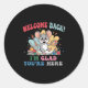 Pegatina Redonda De vuelta a la escuela el profesor bienvenido de v