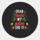 Pegatina Redonda Dear Santa My Sister Did It Funny Christmas Pajama