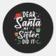 Pegatina Redonda Dear Santa My Sister Did It Girls Kids Boys Funny