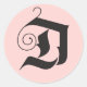 Pegatina Redonda Deck the Halls Modern D Monograma Rosa Negro
