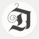 Pegatina Redonda Deck the Halls Moderno Lettering Monograma negro