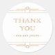 Estos glamorosos stickers de bodas presentan un giro moderno en el Art Deco clásico. Bordes geométricos y ornamentación de color dorado fino decoran un elegante fondo blanco para una espectacular boda vintage. La tipografía clásica de imitación de oro dice "gracias", lo que hace que sean perfectos para añadir a tus favores matrimoniales.