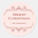 Estos pegatinas vacacionales elegantes, rosados y rojos presentan un moderno giro en el Art Deco clásico. Bordes geométricos ornados y festivos y ornamentación rojas decoran un fondo rosa rubor para un aspecto vacacional único y vintage. La tipografía clásica dice "Feliz Navidad".