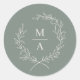 Pegatina Redonda Deep Sage Simple Elegante Laurel Wreath Monograma
