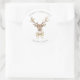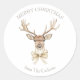 Pegatina Redonda Deer Antlers Gold Bow Feliz Navidad