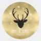 Pegatina Redonda Deer Antlers Silhouette & Snowflakes Gold ID861