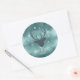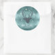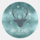 Pegatina Redonda Deer Antlers Silhouette & Snowflakes Verde azulada