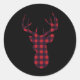 Pegatina Redonda Deer Buck Silhouette Red Plaid Navidades De Coinci