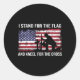 Pegatina Redonda Defiendo La Bandera Y El Arrodillo A La Cruz Ameri