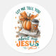 Diseño pacífico y colorido con una escena otoño/otoño con un libro abierto, calabaza y café. El colorido texto inspirador dice: "Déjenme contarles acerca de mi Jesús". Este diseño está disponible en una amplia variedad de productos.