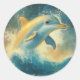 Pegatina Redonda Delfín azul saltando en olas