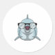 Pegatina Redonda Delfín como nerd con lentes