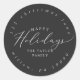 Estos delicados pegatinas de dirección circular de vacaciones de carbón vegetal son perfectos para una tarjeta de vacaciones moderna o un sobre de invitación. El romántico diseño minimalista presenta una tipografía encantadora y elegante sobre un fondo gris oscuro con un aspecto limpio y sencillo.