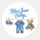 Pegatina Redonda Denim Bear Clothesline Boy Blue Jean Baby Shower