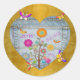 Pegatina Redonda Denim Pocket Heart Flowers Butterflies on Gold