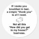 Por el amante del sarcasmo en todos nosotros. Echa un vistazo a este ingenioso "Si te hago desayunar en la cama una simple Gracias es todo lo que necesito. No todo esto, ¿cómo llegaste a mi casa de negocios?