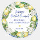 Diseñado para coordinar con la Colección de Limones de Jenny, esta pegatina de almuerzo de desposada presenta un limón amarillo y una guirnalda floral blanca. Hay un toque de las baldosas azules alrededor del borde de la pegatina redonda. El nombre de la novia y el almuerzo de desposada están escritos en una fuente de letra moderna y trendy. La fecha completa el texto. Un pequeño corazón amarillo añade un toque de romance. Todo el texto es editable.