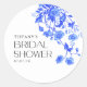 Pegatina Redonda Desayuno Nupcial Floral Azul Toile Francés Antiguo