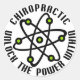 Este diseño presenta un átomo con texto que dice CHIROPRÁCTICO: DESBLOQUEAR LA ENERGÍA DENTRO.