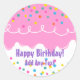Pegatina Redonda Descongelamiento de pasteles de cumpleaños rosados