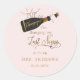 Cliente específico "¡Descorchen el champán, cambio de apellido!" Pegatina redonda clásica. Perfecta para tu despedida de soltera o ducha de novia. Agrega tu nombre y fecha.