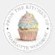 Hermosa ilustración glaseada con chispas pintura de cupcake con "desde la cocina de" , etiquetas redondas de productos horneados, con tipografía clásica decorativa abierta. Solo agrega tu nombre. Un estilo llamativo para tus productos horneados. Puedes usar la herramienta de diseño simple para cambiar el estilo y el color de las fuentes.