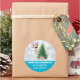 Pegatinas - De la cocina de ; Hecho con amor. Con tu nombre personalizado. Creado con un ilustracion divertido. Una llama linda con gafas de sol negras y un sombrero de santa roja. Detrás de un árbol de Navidad con regalos festivos. La palabra "Alegría" escrita encima de su cabeza en un colorido tipo de letra navideño. Fondo de bokeh plateado con un borde azul helado. Diseño temático de Navidades caprichosos y divertidos.