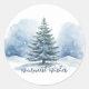 Pegatina Redonda Deseos más cálidos Árbol Evergreen cubierto de nie