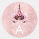Pegatina Redonda Deslumbrante rosa dorado Unicornio Monograma cumpl