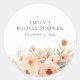 Pegatina redonda clásica Despedida de soltera floral boho melocotón