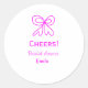 Pegatina Redonda Despedida de soltera lazo rosa violeta agregar nom