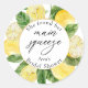 Sella tus invitaciones o detalles con estas clásicas pegatinas de limón "Main Squeeze". Ella encontró a su "Main Squeeze". Con el nombre de tu evento y la fecha enmarcados en una corona de eucalipto verde. Coordina con la colección Vintage Lemons and Greenery en la tienda Adore Paper Co. de Zazzle.