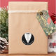 Pegatina de despedida de soltero con traje negro y pajarita. Personalízala con el nombre del novio.