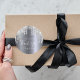 Una fiesta de despedida de soltera moderna y glamurosa. Un fondo metálico plateado falso con aspecto de papel de aluminio decorado con gotas de purpurina plateada falsa, con un efecto de pintura que gotea. Personalice y agregue una fecha y nombre. El texto: Gracias está escrito con una tipografía moderna con estilo de letra a mano. Perfecto para detalles y tarjetas de agradecimiento.