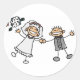 Pegatina Redonda Día de la Boda Novia Groom Pareja Feliz Sonriente